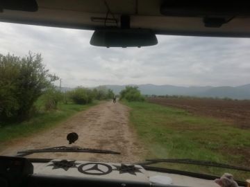 Pokračujeme dále. Hned za městem opět odbočíme z hlavní silnice. Konečně máme možnost vyzkoušet teréní schopnosti našich strojů. Po pár kilometrech se totiž nádherná silnice promění v tankodrom. Na Jawě mizím posádce v Merglu hned za první zatáčkou. Mohu se totiž výmolům ladně vyhýbat, avšak Mergl si to musí užít plnými doušky. Projíždíme lesem, vystoupáme kamsi k polím a cestou pozorujeme zarostlé jezero. Ujedeme asi 10km, když se octneme na polní cestě, která končí uprostřed vesnice. Propleteme se mezi domky zpět na asfaltku, která nás dovede k "Rakovishki monstery". Pravoslavný klášter je jen pro nás. Všimla si nás jeptiška, která nás celým komplexem provede. Jsme za to vděční, protože je se na co koukat.