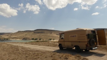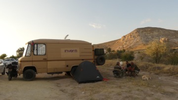 Odpoledne se přesouváme k jezeru u Pinarbasi. Cestou se zastavíme na prohlídku skalního kostelu. U vstupu musíme zaplatit 10TL/os., avšak máme s sebou jen 20TL. Naštěstí nás nechají i za tuto cenu jít dovnitř. Stojí to za to. Kostel má dvě patra a velmi nízké, úzké chodbičky. U jedné z nich se málo skloním a pěkně se mi po nárazu rozsvítí. U samotného jezera je nádherně. Po třech dnech se můžeme vykoupat v teplé vodě a dokonce máme výhled na hory. Jakmile zapadne sluníčko, začne hrozně moc foukat vítr. Výhoda je, že rozfouká mraky a nám se otevře krásná hvězdná obloha.