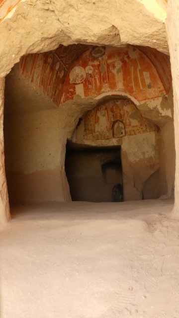 Probouzíme se bohužel těsně po tom, co přestaly lítat balóny nad Kapaddokií. Já dopoledne pracuji a ostatní vyráží na prohlídku národního parku. Objevují několik skalních obydlí, které prolézají křízem krážem. Často musí lézt skoro po čtyřech, aby se dostali do dalších místností. Je to nádhera, člověk si přijde jak v jiném světě.