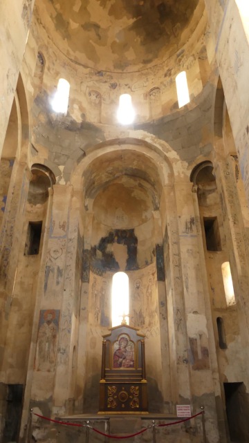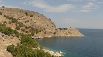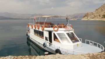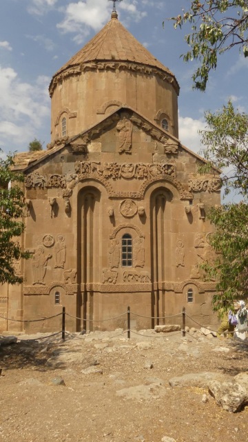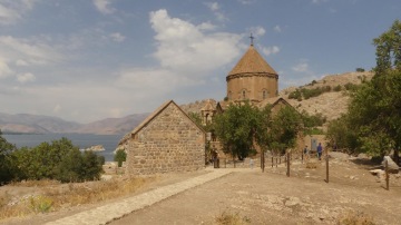 Od jezera Van to k Araratu je slabých 250km. Než se však dáme do pořádného přesunu, změníme dopravní prostředek. Lodí si odskočíme na ostrov, kde se nachází nádherný armenský kostelík. Po Vanu jedeme loní asi 20min za 25TL/os. Shadowa necháváme v přístavu, kde má stín a budá pozornost. Ostrov máme za hodinku prozkoumaný, neboť nás pouští jen do okolí kostelíku. Za vstup na ostrov platíme 35TL/os., ale stojí to za to. Nádherné výhledy vystřídá úchvatná výzdoba kostela.