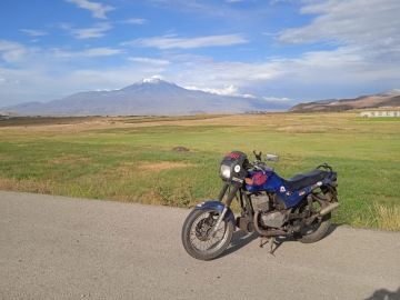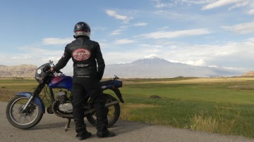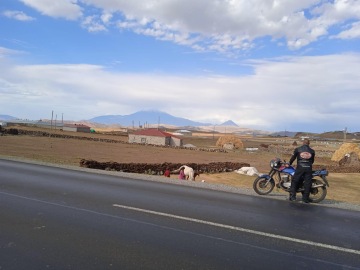 Pak už práskneme do koní a jedeme pokořit Ararat. Zhruba půlku cesty nás doprovází výhledy na "nekonečný" Van, spojené s neutichájícím bočním větrem. Několikrát překonáme kopce 2000m.n.m, skrze které se táhne hranice s Íránem. Jedeme mezi dvěma ploty. Od jednoho z nich mě vyhání turecký voják, když čekám na ploužící se Mergl na vrcholku kopce přesně u brány do Íránského vojenského prostoru. Hulákání vojáka si všimnu čirou náhodou, když mi zrovna dohraje písnička v helmě.