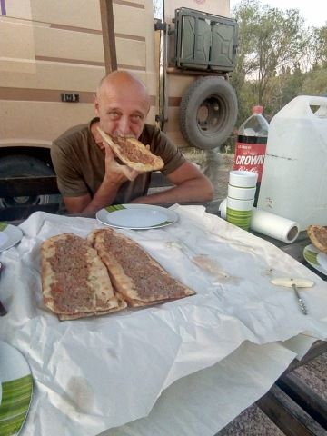 Vstáváme brzy, kolem 5:00hod., abychom mohli ujet přes 600km. Celý den drzíme kilometry a v mezičase pracuji. Po poledni začíná být hodně slunečno a všechny nás to smaží. Cestou se stavíme v místní pekárně pro chleba a při té příležitosti si koupíme na večeři Pide.