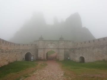 Po obědě není počasí o nic lepší, ale i o tom tyhle cesty jsou. S lehkou nevolí a zároveň nadšením se soukám zpět do motorkářského oblečení, abychom mohli navštívit pevnost Belogradchik. Pevnost se ukrývá mezi vrcholky skal a kolem dokola má přes 8km. Kdyby svítilo sluníčko, musel by to být nádherný pohled do dalekých krajin. Bohužel každý den není posvícení a my vidíme pouze mlhu, která by se dala krájet. Nicméně okolní skály, které vidět z blízka jsou, vypadají božsky.