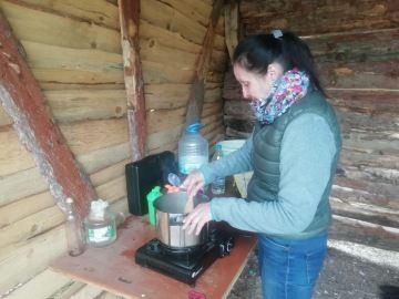 Za zesilujícího deště se vracíme zpět na parkoviště. Rozhodneme se zůstat ještě jednu noc na stejném místě. Večer rozděláme oheň, abychom usušili vlhké oblečení. Já neodolám a musím vyzkoušet místní koupelnu šumějícího potoka. Princezna ze mě není, tak je to dobré!