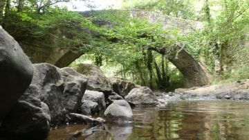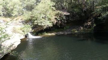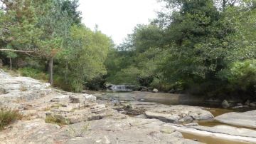 V mapě jsme si vybrali okruh, který by nás právě kolem říčky měl vrátit po několika kilometrech zpět na parkoviště. Bohužel znašení turistických stezek Španělům moc nejde. Zkoušíme po třech kilometrech uhnout doleva, ale po dalším kilometru se musíme vrátit. Všude kolem kapradí větší než Hanka a cesta končí mezi stromy. Vracíme se tedy zpět stejnou cestou.