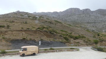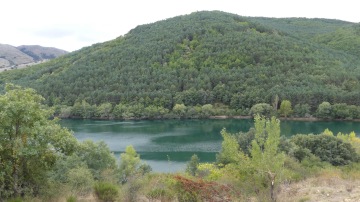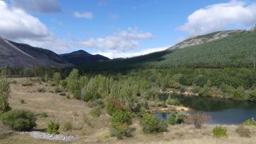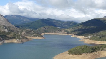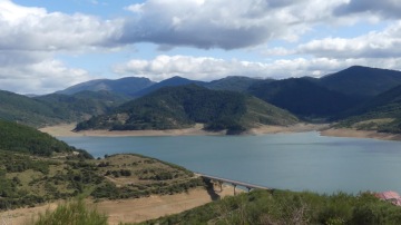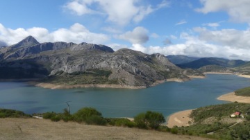 Probouzíme se s nádherným výhledem na ostrov uprostřed jezera. Rozloučíme se s Angličany vedle a i Shadow štěkne na rozloučenou své nové kamarádce. Za jezerem se napojíme na silnici P-210, která vede napříč Parque Natural Montaña Palentina. Stoupání do hor nám dává lehce zabrat. Jedeme zhruba 30km/h a kocháme se úžasnými výhledy na hory i jezera všude kolem. Každou chvíli stojíme, abychom si udělali několik fotek, videí nejen přírody i orlů, kteří krouží nad námi.