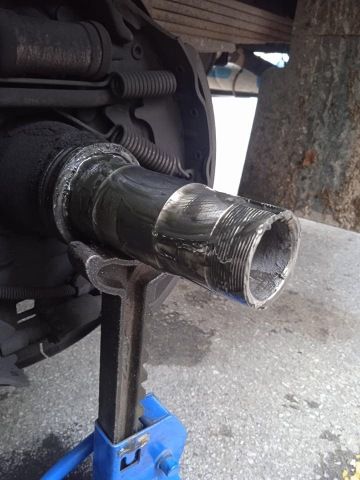 Vezmeme si vesty, postavíme výstražný trojúhelník a už lezu pod auto. Tam to vypadá v pohodě, avšak při obhlídce kol zjistím, že se nám utrhla levá zadní poloosa. Po chvilce vidím jak přijíždí německý pár s obytným vozem. Zastavím ho a snažím se domluvit odtah. Avšak mají pravdu, že auto je moc velké a silnice úzká, klikatá. Nakonec nás alespoň odtáhnou 20metrů na plac u krajnice, kde nebudeme nikomu překážet. Následně sedám k nim do auta, abych se dostal do 25km vzdáleného Cangas de Onís. Ještě jednou moc děkuji!