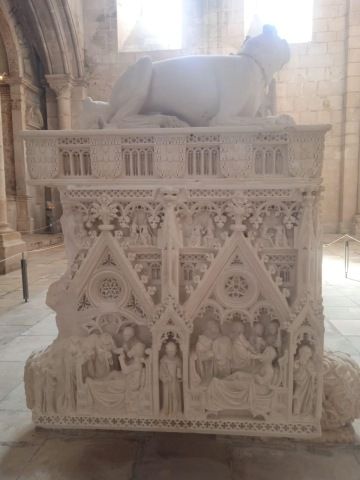 Za dalších zhruba 30km navštěvujeme poslední z trojice blízkých klášterů, patřící do světového dědictví Unesco. Mergla necháme na odstavném parkovišti a scházíme ke kláštěru Alcobaca. Osobně se nám líbí ze všech tří nejméně. Ovšem v tomto klášteře jsou úžasně zdobené hrobky.