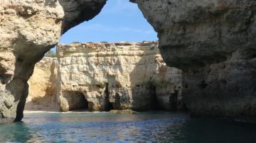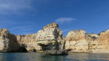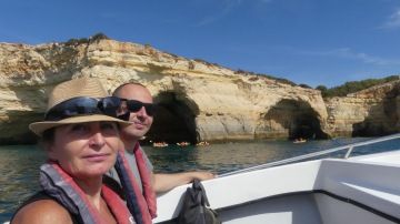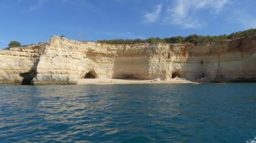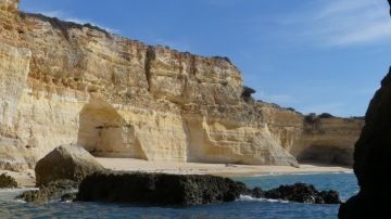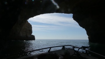 Už od rána čekáme na 11 hodinu, kdy máme nasednout do člunu, abychom navštívili jeskyně Benagil. Výlet stojí 20eur/os a jen co vyjedeme na moře, nelitujeme. Celou hodinu plujeme podél útesů plných jeskyň i pláží dostupných pouze z moře. Každá jeskyně je jiná, některé jsou uzavřené, jiné mají nahoře díru. Další skrývají uvnitř pláže. Nejkrásnější z nich je obrovská, na stěnách má prstence a uprostřed obrovskou díru, kterou do ní svítí slunce. Tady bych si dovedl představit ztroskotat.