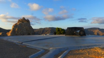 Po prohlídce města pokračujeme na pobřeží. Dálnice nás dovede skoro až do Cartageny. Před ní odbočíme směrem Batería de Castillitos. Na začátku klikaté cesty je značka se zákazem vjezdu obytných vozů. No, asi ji přehlédneme. Celých 8km stoupáme po úzké silnici k historické pevnosti. Občas musíme zastavit na okraji útesu, abychom pustili protijedoucí auto. Historická pevnost je velmi zajímavá. Má taktické úmístění, kdy pravděpodobně sloužila k ochraně přístavu v Cartageně. Dá se téměř celá prozkoumat, včetně chodeb do jeskyň s výhledem na moře.