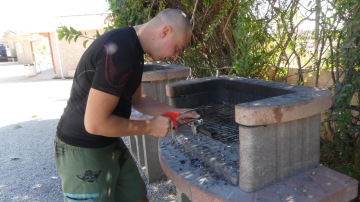 V pátek bylo čekání nekonečné. Z nudy jsem si řekl, že si nástavec snad vyrobím. Prohrabel jsem všechno nářadí, které máme s sebou. Jak si tak hrabu s mouchou na rameni, docvakne mi jedna věc. Vždyť na 10ku šestihranný klíč (imbus) musí pasovat 10ka šestihranný ořech! Vezmu čerstvě koupený 10ku imbus, pilku na železo, malinký svěrák a pustím se do výroby. Za 5min držím v ruce tolik potřebný nástavec!