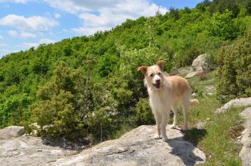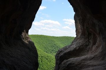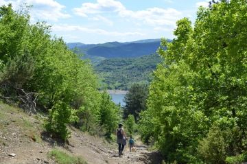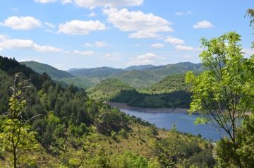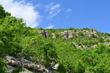Najednou se krásně zalesněná cesta mění na pořádně kamenitou. Všímáme si, že asi po několika kilometrech je značená cesta k jeskyni modrým ukazatelem. Následujeme tedy modré značky. Po chvilce narazíme na odpočinkový přístřešek. Napijeme se a kocháme se výhledem. Nicméně musíme vystoupat ještě pěkný kus cesty. Jdeme! Přeci už jsme tak daleko, to nevzdáme!