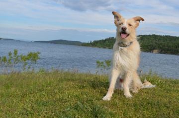 Kempujeme - židličky, stoleček a pivo. Zasloužená odměna. Shadow je šťastný, protože nás může otravovat s klackem. Kolem přehrady jsou hory. Pozorujeme jak se halí do mraků i jak za nimi zapadá slunko. S pivem v ruce si užíváme poslední střípky západu.