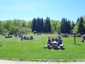 Vyrážíme k "nedalekému" vodopádu. Pomalu začínáme chápat, proč Bulhaři neuvádí na směrníkách vzdálenost. Pravděpodobně to bude okolo 5km, ale převýšení již od začátku dávát zabrat. Z tábořiště klesáme okolo Zlatých mostů na parkoviště pod vodopády. Od parkoviště pěknou dobu stoupáme, abychom následně opatrně scházeli krpál k vodopádu. Všude je plno lidí, ale hlavně spousta míst ke grilování či relaxaci.