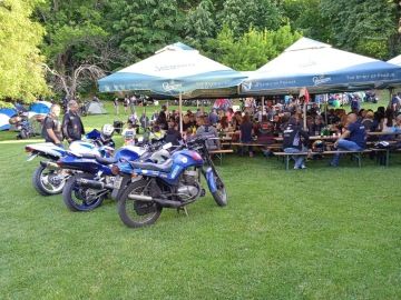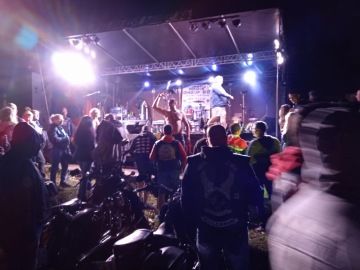 K večeru vše sbalíme a vyrážíme do hor nad Petrich, kde se koná sraz. Zaplatíme vlezné 10lev/os a i s Mercedesem můžeme dovnitř. Jawa ihned upoutá pozornost. Stejně tak Shadow, díky kterému si k nám sedají dva starší motorkáři. Jeden z nich přinese místní pálenku a tím, dalo by se říci, mé vyprávění končí. Pak už si jen pamatuji dvě vcelku dobré kapely, jak Petr odpadl kolem 11hod. a Hanka s Ivčou šli spát kolem půlnoci. Poslední střípek z mé paměti sahá někam k 2hod ráno, jak sedím s motorkáři u piva.