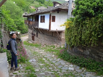 V mapě jsme si vyhlídli zajímavé místo, které bychom rádi navštivili - Chudnite Mostove. Ještě předtím dojedeme 3km do vesničky Dolen, která je architektonicko-kulturní rezervací. Vesnička je to hezká, ale za 15minu můžeme jet dál. Pokračujeme skrz hory, kde začíná pršet. Během obědové pauzy, začínají padat kroupy. Nemůžeme najít nic vhodného k přenocování, a tak se rozhodneme pokračovat.