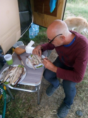 Během uplynulého týdne se jinak nic zásadního nestalo. Za zmínku snad stojí jen náš nový společník. Jeho úloha je jasná, ve spolupráci se slunečním svitem nám dobíjet baterku. Člověk by řekl, že 66cm x 77cm x 5cm nebude žádný velikán, opak je pravdou. Jednak váží 16kg, což se z centra Primorska na pláž Perla dost pronese a druhak zabírá v kufru hodně místa. Museli jsme s Petrem vymyslet jak vše přeskládat, aby se tam vešel. Hanka při pohledu na solár konstatovala:,,Tak mi se snažíme před odjezdem minimalizovat a pak si koupíme UFO (gril) a teď ještě celou hvězdárnu!". Nutno však říci, že oba dva nový kámoši si své místo řádně odpracují. Od doby, kdy máme solár, neběžela elektrocentrála. Elektronika má však vždy dostatek šťávy.