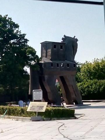 Po obědě poprvé navštívíme potraviny a hned zjišťujeme, že vyjde levněji se stravovat na ulici. Pak se skrze kopce a podél moře přemisťujeme do Carakkale. Zde se za 117TL naloďujeme na trajekt. Po 10 minutách už opět drtíme asfalt do Tróji. Na sluníčku běžně atakujeme hranici 40st.