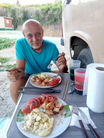 Objeví nad kempem les, o kus dál nádhernou zátoku a seznámí se s půlkou kempu. Divocí psi si zatím zvykli na Shadowa. Občas někdo přijde, aby se zeptal zda například nemají náhradní kartuš na plyn nebo jestli si nemohou dobít telefon. Na oplátku Petr s Hankou dostanou buchtu, kafe či domácí víno. Po deseti dnech je už válení u moře nuda a začínají plánovat kam pojedeme až se vrátím. Čas jim zpestřovali jen pravidelné návštěvy dvounohých koček, které ho chodili rozveselit ze smutku po páníčkovi. Měl několik osobních házečů míčku. Dokonce se stal i mediální hvězdou, neboť si jej fotili pro marketingové účeli na sociální sítě kempu.