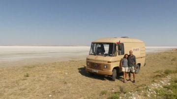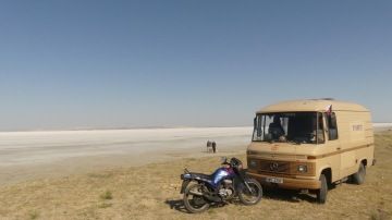 Jelikož máme ještě do setmění dostatek času, rozhodnu o přesunu dalších 180km k solnému jezeru Tuz Golu. Příjíždímě právě ve chvíli kdy zapadá slunce. Projíždíme pod nádherně barevnými skálami a na druhé straně pozorujeme zapadající slunce. Nádherný pohled. U jezera jsme absolutně sami. Užíváme si ticha a pohledu na nekonoečný horizont solného jezera.