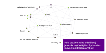 Je však potřeba počítat s tím, že hybatelem inovací jen zřídkakdy budou samotní zaměstnanci. S tím souvisí i otázka, kterou v průběhu Meetupu Pavel Bartoš položil publiku: Kdo (pozice nebo oddělení) je u vás nejčastějším hybatelem inovací a zdrojem ambicí? Odpovědi byly následující: