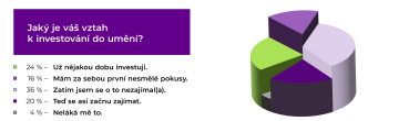 A výsledky? 24 % již aktivně investuje, 16 % učinilo první nesmělé kroky, 20 % uvažuje o začátku, 36 % se zatím tématem nezabývalo a pouze 4 % o investování nemá zájem. Ankety ukazují rostoucí zájem o alternativní investice a potenciál, který může propojení umění a byznysu nabídnout.