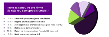 Další otázka směřovala na zkušenosti firemní spolupráce s umělci. Cílem bylo zjistit, nakolik firmy aktivně propojují kreativitu umělců se svou firemní kulturou a projekty, a jaké je aktuální povědomí o možnostech spolupráce na obou stranách.