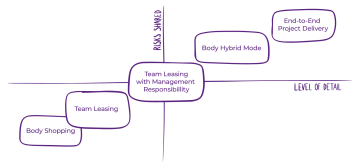If your IT department is developed in all necessary areas and you need to scale it quickly in time, you will probably decide between Body Shopping and one of the versions of Team Leasing.
