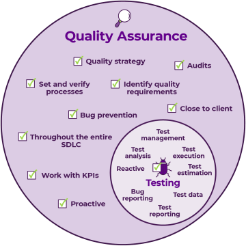 Druhou kapitolou je pak rozšířená disciplína Quality Assurance, kam spadají témata jako pravidelná prioritizace scope, dobře sestavený tým nebo transparentní reporting.